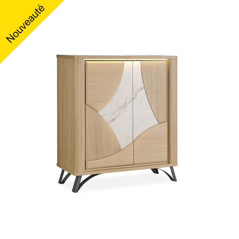 Côtés : Panneaux de particules revêtus de placage chêne.